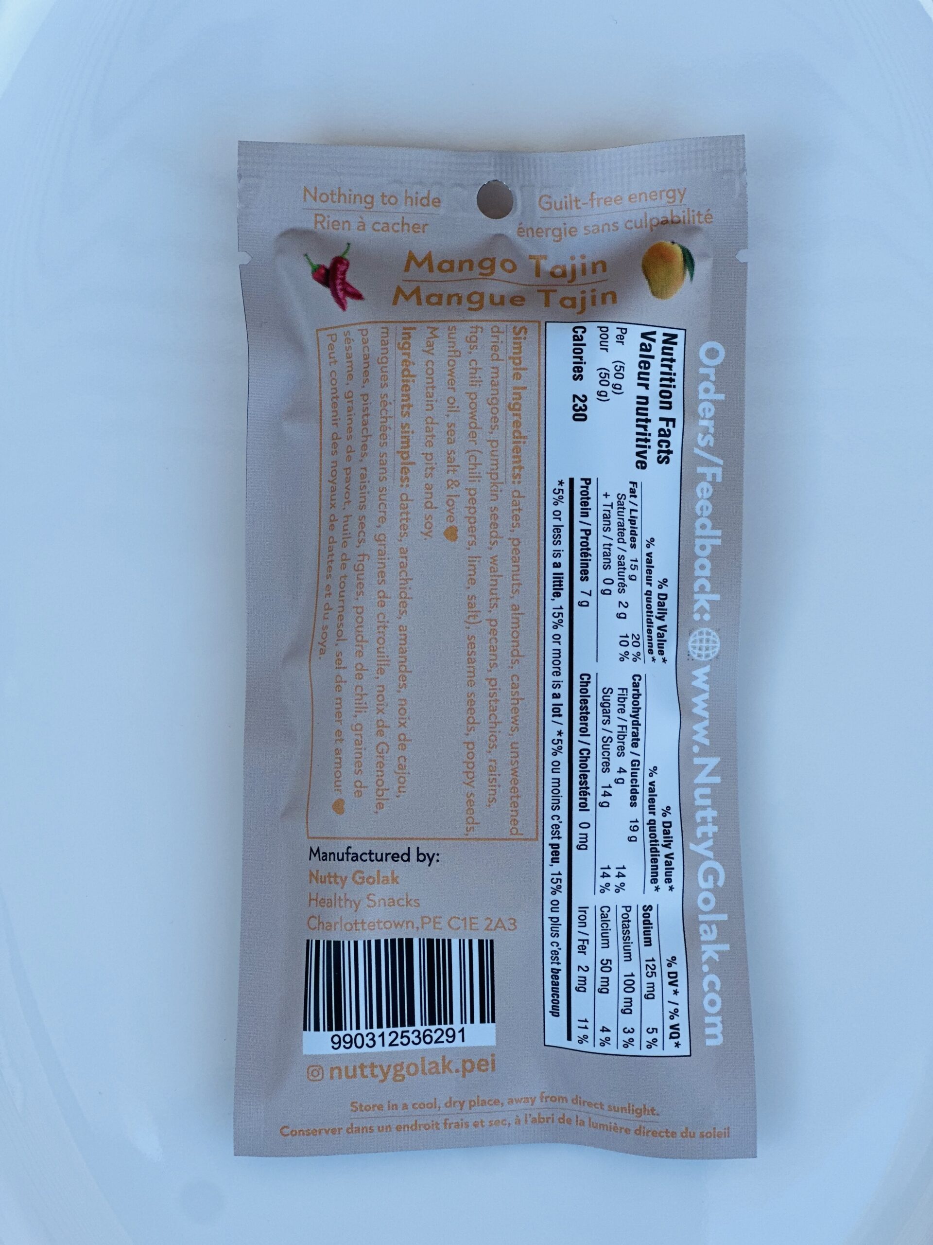 For adventurous snackers, Nutty Golak Mango Tajin combines dried unsweetened mango with Tajin seasoning, nuts, and seeds for a unique tropical twist. It’s a vibrant flavor experience that also nourishes your body.